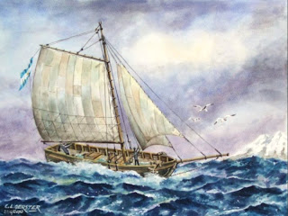 En esta acuarela muestro a la famosa goleta Canadiense "Bluenose", ganadora imbatible de todas las regatas del Atlántico en que participó en la década de los años 1930